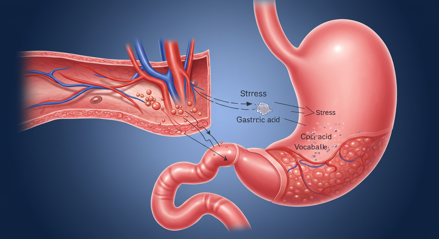過度なストレスや不規則な生活習慣が続くと、胃酸の分泌が過剰になり、胃や十二指腸の粘膜が傷つき、潰瘍が形成されることがあります。