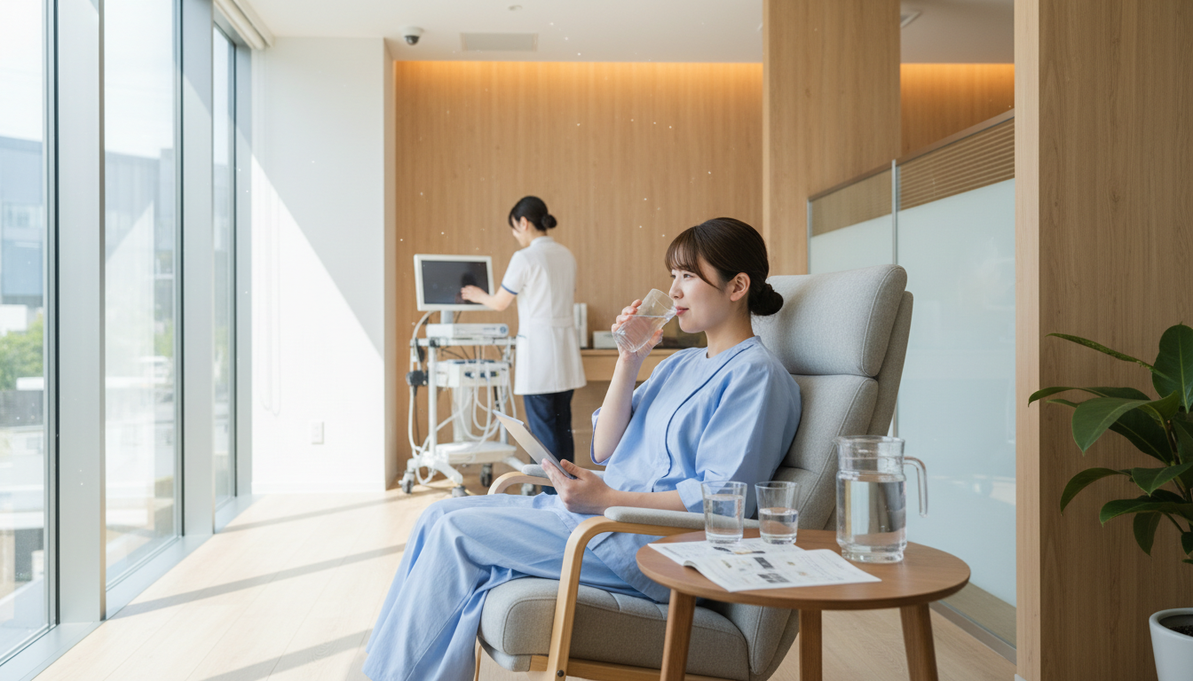 また、下剤を飲んだ後に移動する必要がないため、トイレの心配をせずに済みます。自宅からクリニックまでの距離が遠い方や、移動中のトイレが不安な方には特におすすめです。